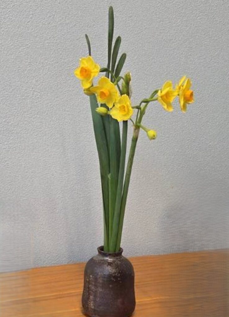 水仙は、スッと真っ直ぐに伸びた茎の先に、気高く花を咲かせます。厳しい寒さに耐えながらも、自分の軸を崩さない強さを持っています。